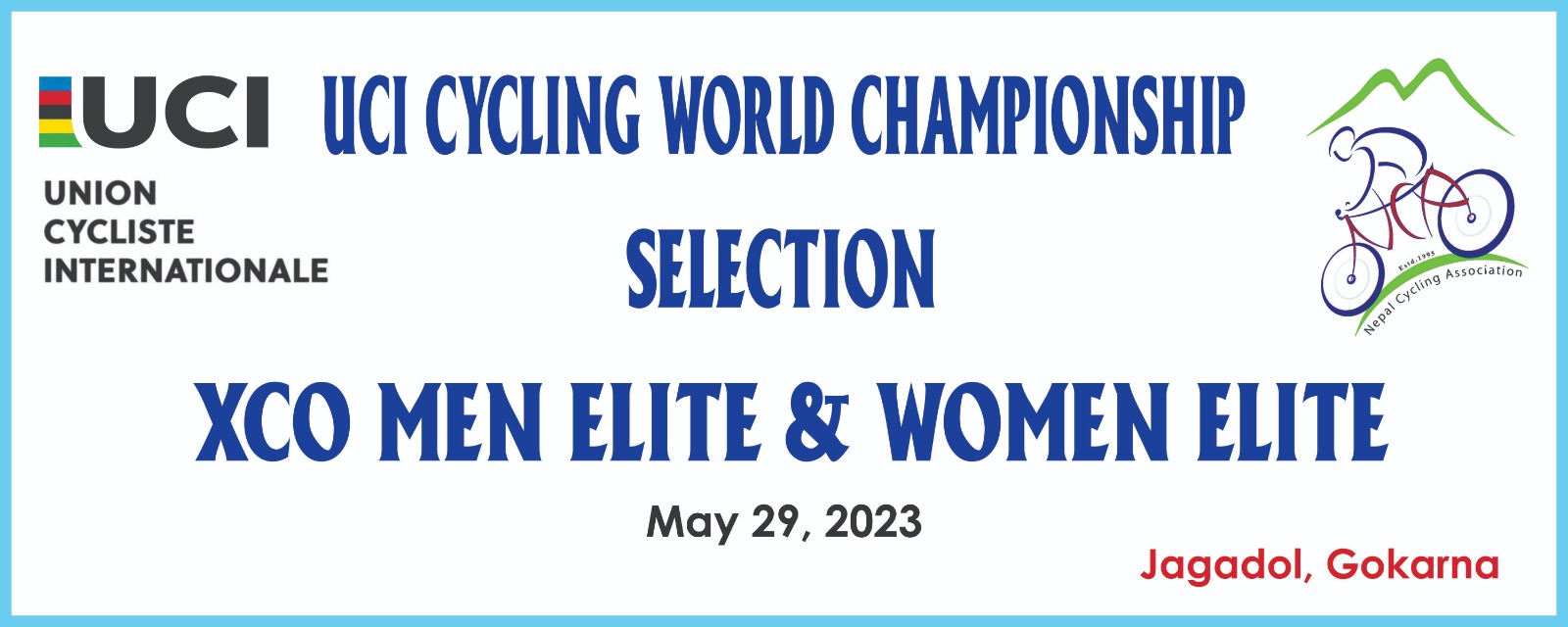 World Championship Selection Race to be held on 29 May 2023, Monday 10:00 am at Jagadol, Gokarna, Kathmandu. Post navigation नेपाल साइक्लिङ महासंघको तदर्थ समिति गठनOlympic Day Inauguration Cycle Rally and Celebrating World Bicycle Day 2023